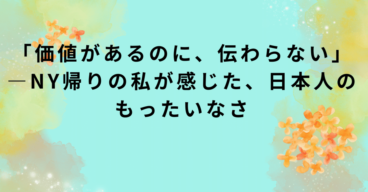 「価値があるのに、伝わらない」—NY帰りの私が感じた、日本人のもったいなさ|Lifestory Atelier