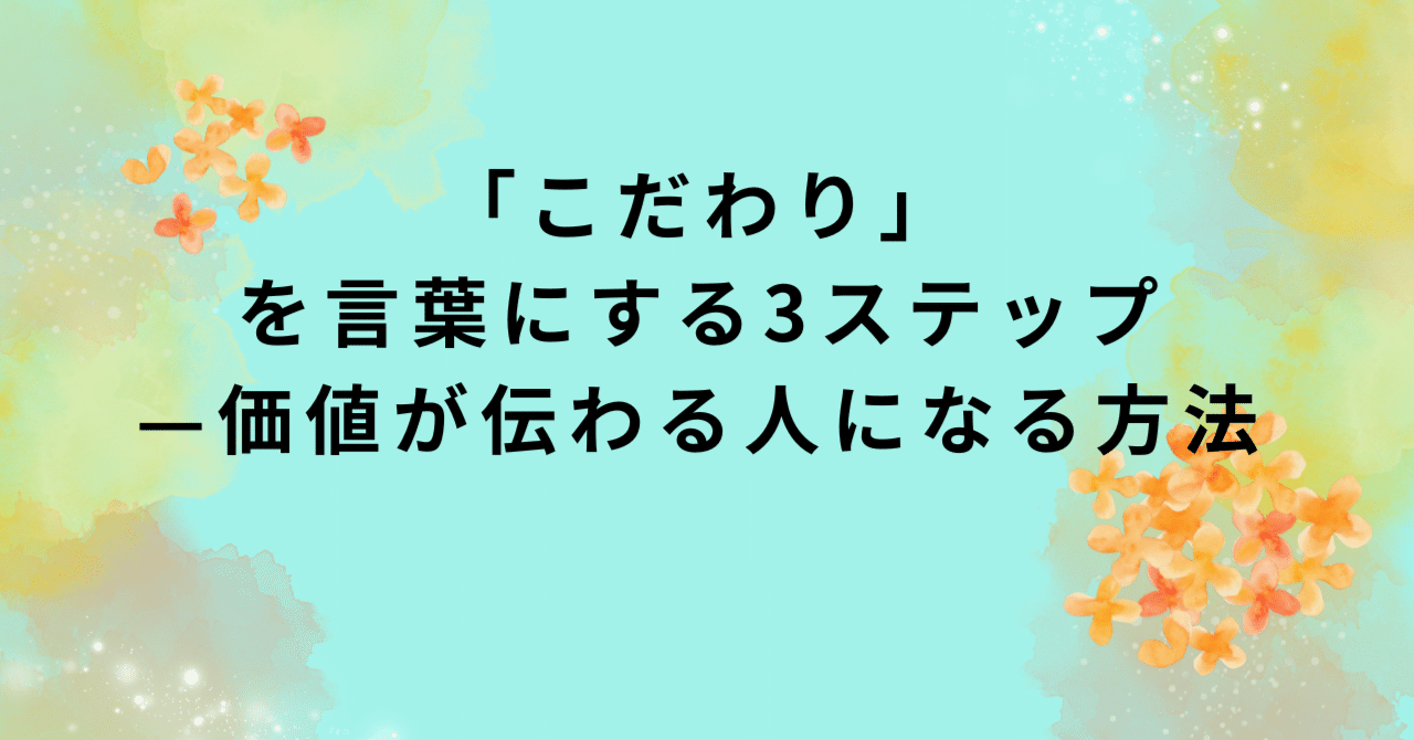 こだわり」を言葉にする3ステップ—価値が伝わる人になる方法|Lifestory Atelier