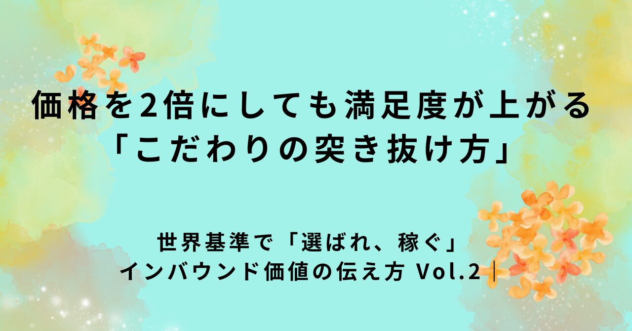 世界基準で「選ばれ、稼ぐ」インバウンド価値の伝え方 Vol.2